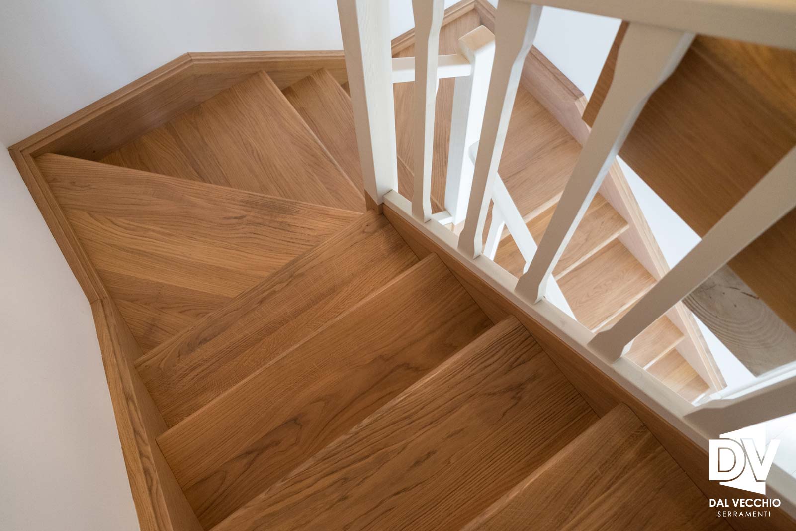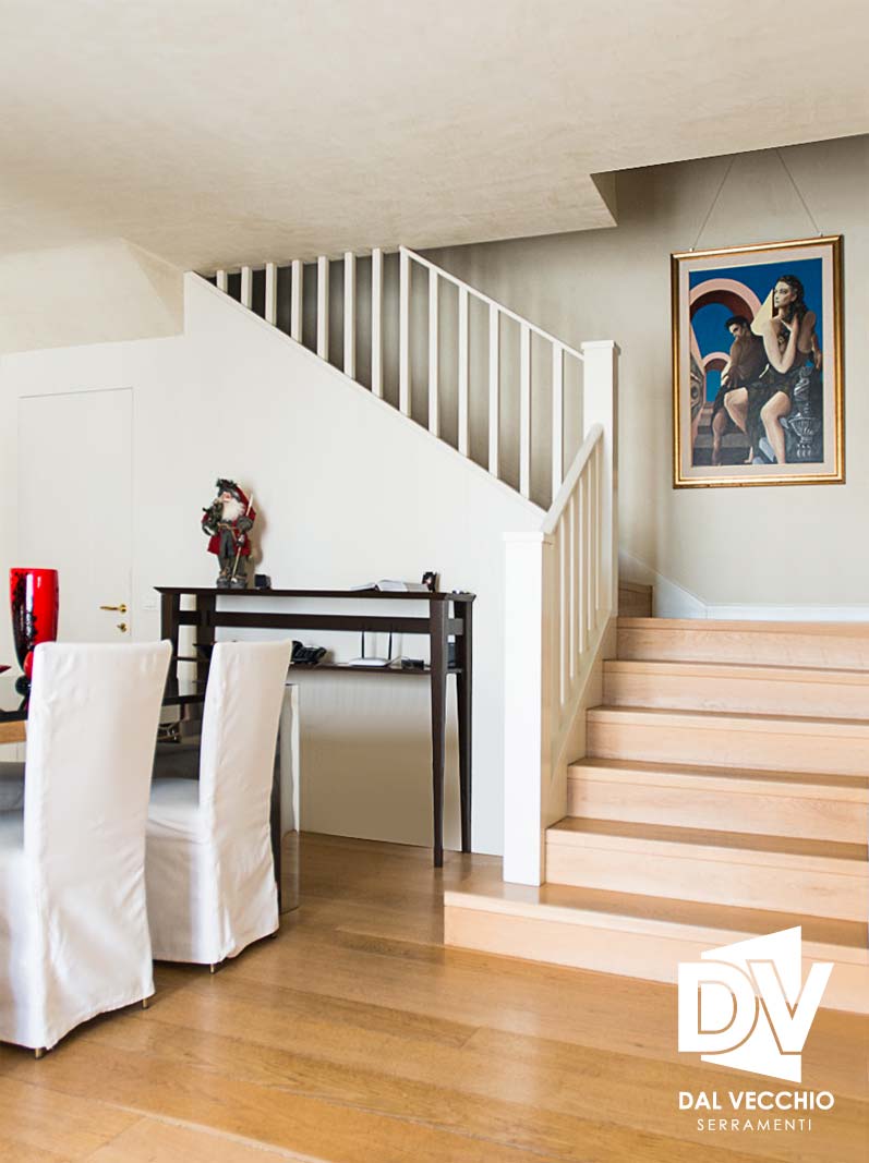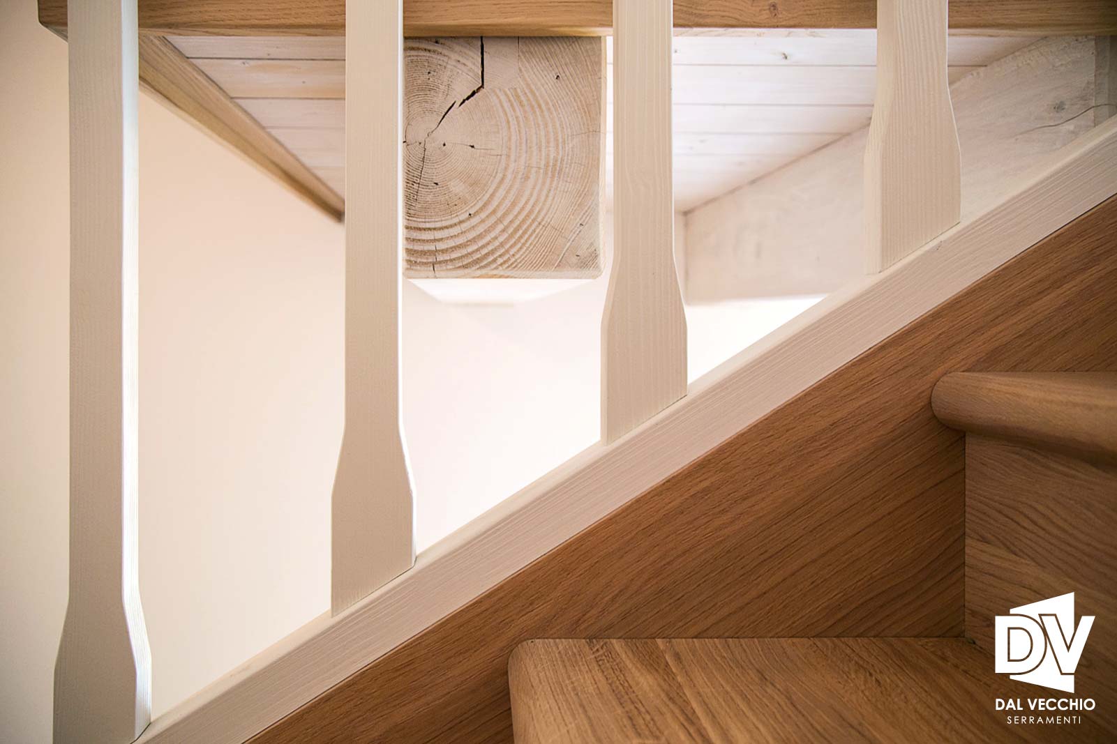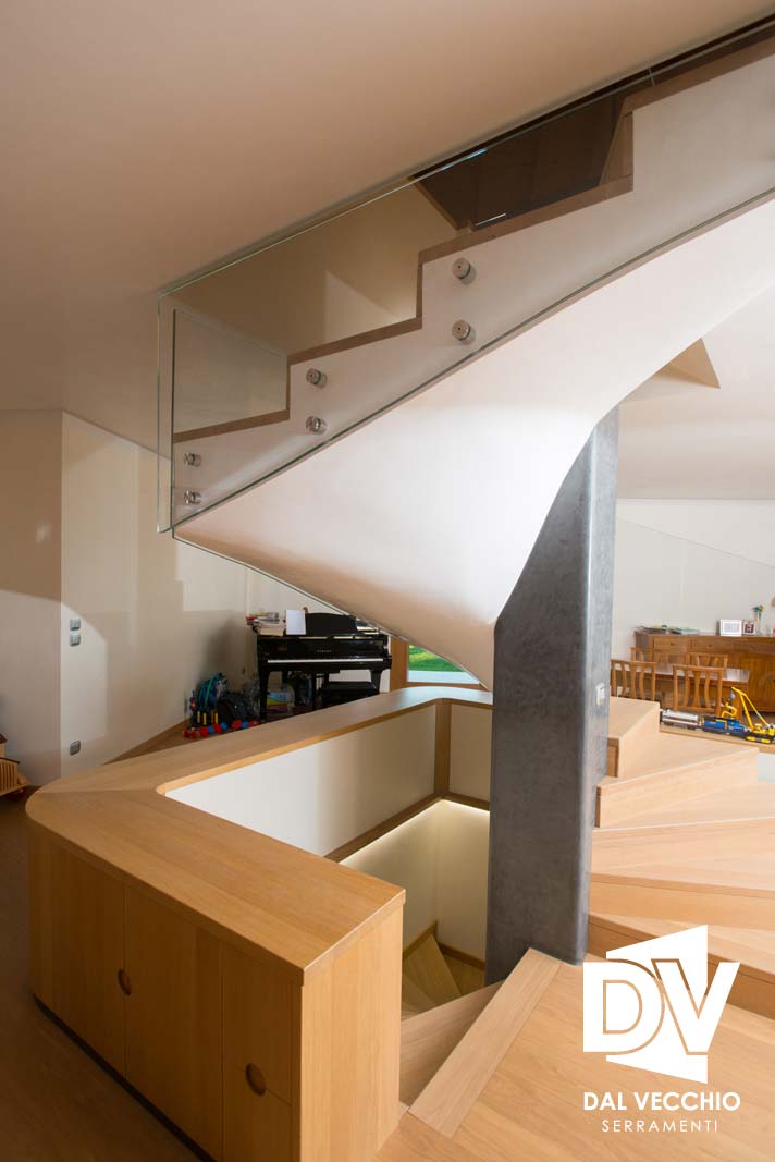 Dal Vecchio Serramenti crea scale in legno massello con balaustre in legno, vetro e acciaio. Scale che di adattano a qualsiasi sfumatura architettonica o stilistica presente nell'abitazione.