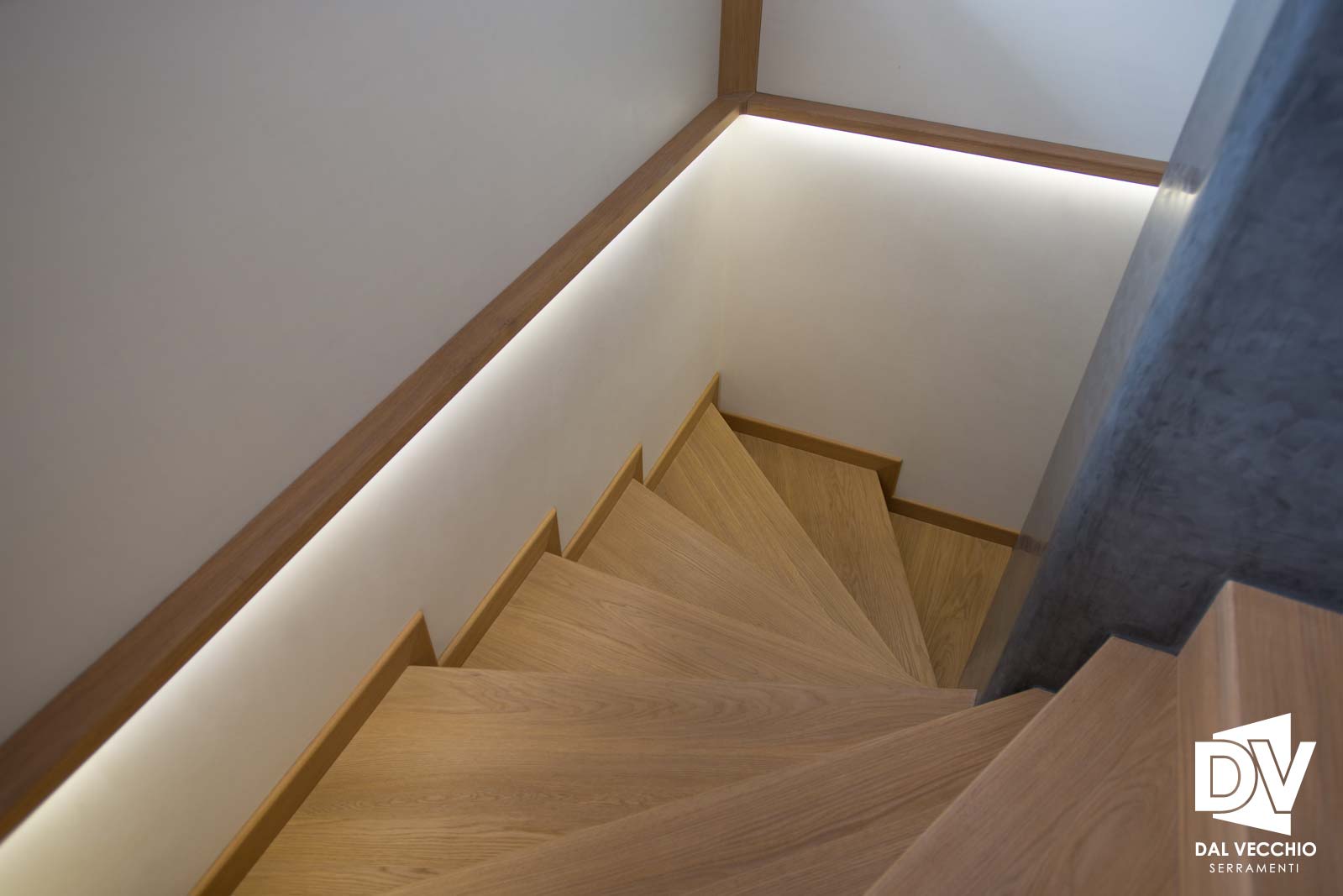 Corrimani, pianerottoli, battiscopa, gradini, rampe, finiture ed essenze, ogni dettaglio fa parte di un progetto su misura che si adatta agli spazi e ai propri gusti.
